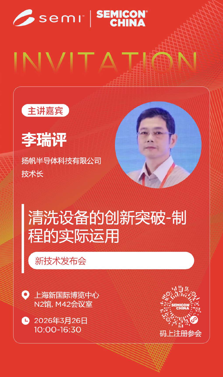 Yangfan Semiconductor Technology Co., Ltd. was invited to participate in the "Innovative Breakthroughs in Cleaning Equipment – Practical Application of Processes – New Technology Launch Conference", focusing on new industry trends and witnessing new technological breakthroughs together!